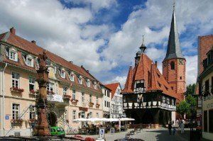Das Michelstädter Rathaus ist berühmt. Von unbekannten Baumeistern wurde es 1484 errichtet. Am Rathaus selbst ist das Erbauungsdatum in gotischen Ziffern festgehalten. Viele US-amerikanische Besucher können sich kaum vorstellen, dass das Gebäude acht Jahre vor der Entdeckung ihres Kontinents erbaut wurde.
